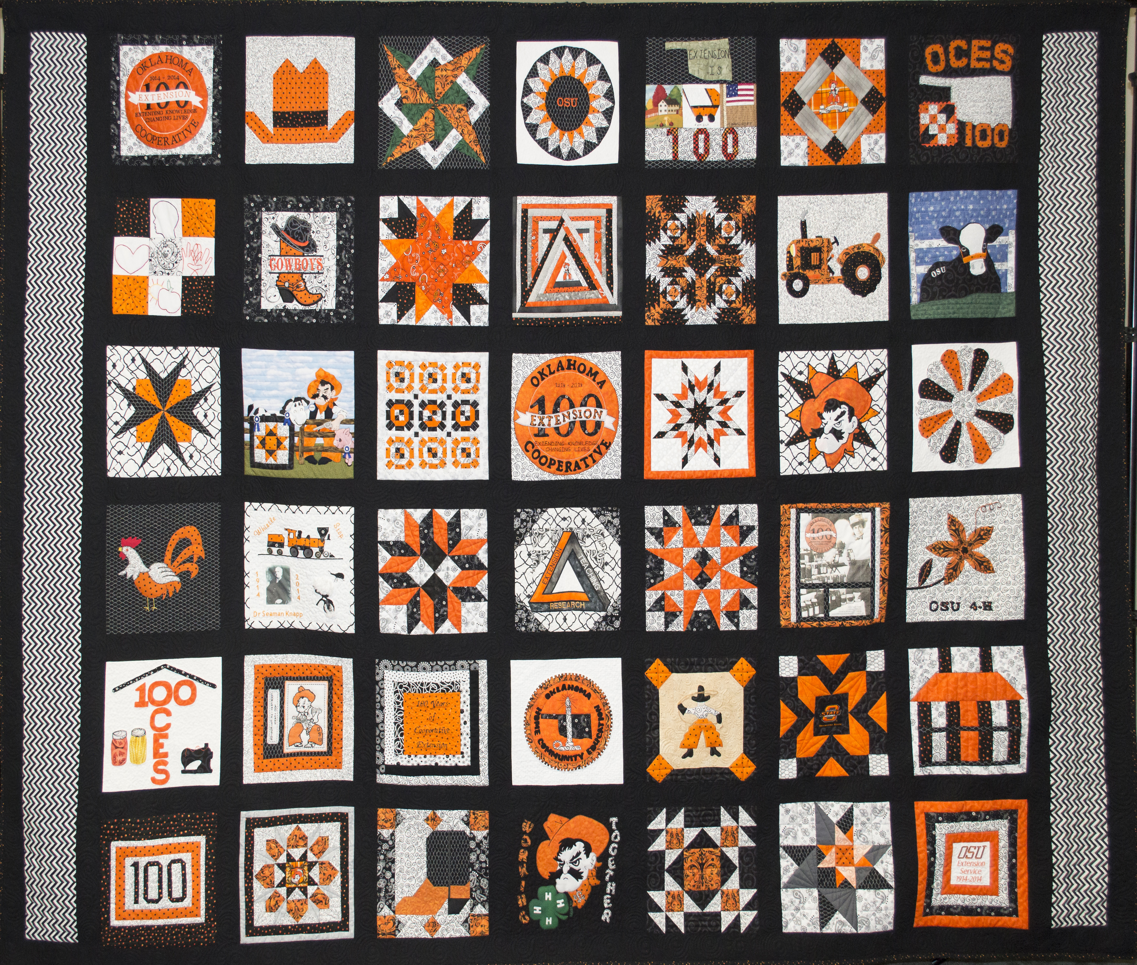 The official centennial quilt is one of the most enduring mementos of the Oklahoma Cooperative Extension Service’s celebration of its 100th anniversary of extending knowledge and changing the lives of Oklahomans of all ages.