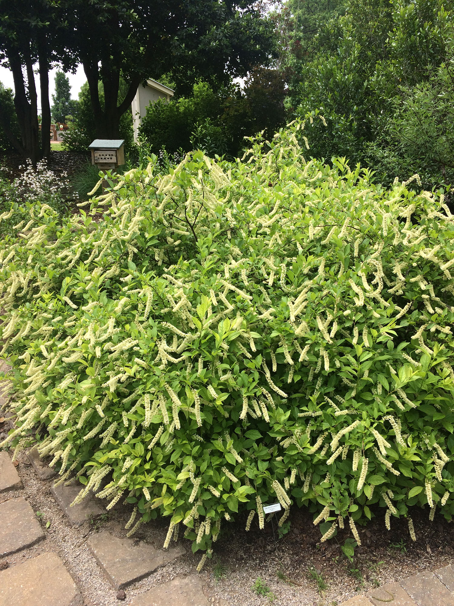 Virginia sweetspire is a native shrub to eastern Oklahoma. It is a mound-shaped, slender-branched, deciduous shrub generally 3 to 6 feet tall and wide. Small, white, fragrant flowers bloom in spring to early summer in 4-inch spires that droop with the arching branches. Flowers open from base to tip, so it appears to bloom for a long time. Leaves turn red to purple in fall and persist well into the winter.